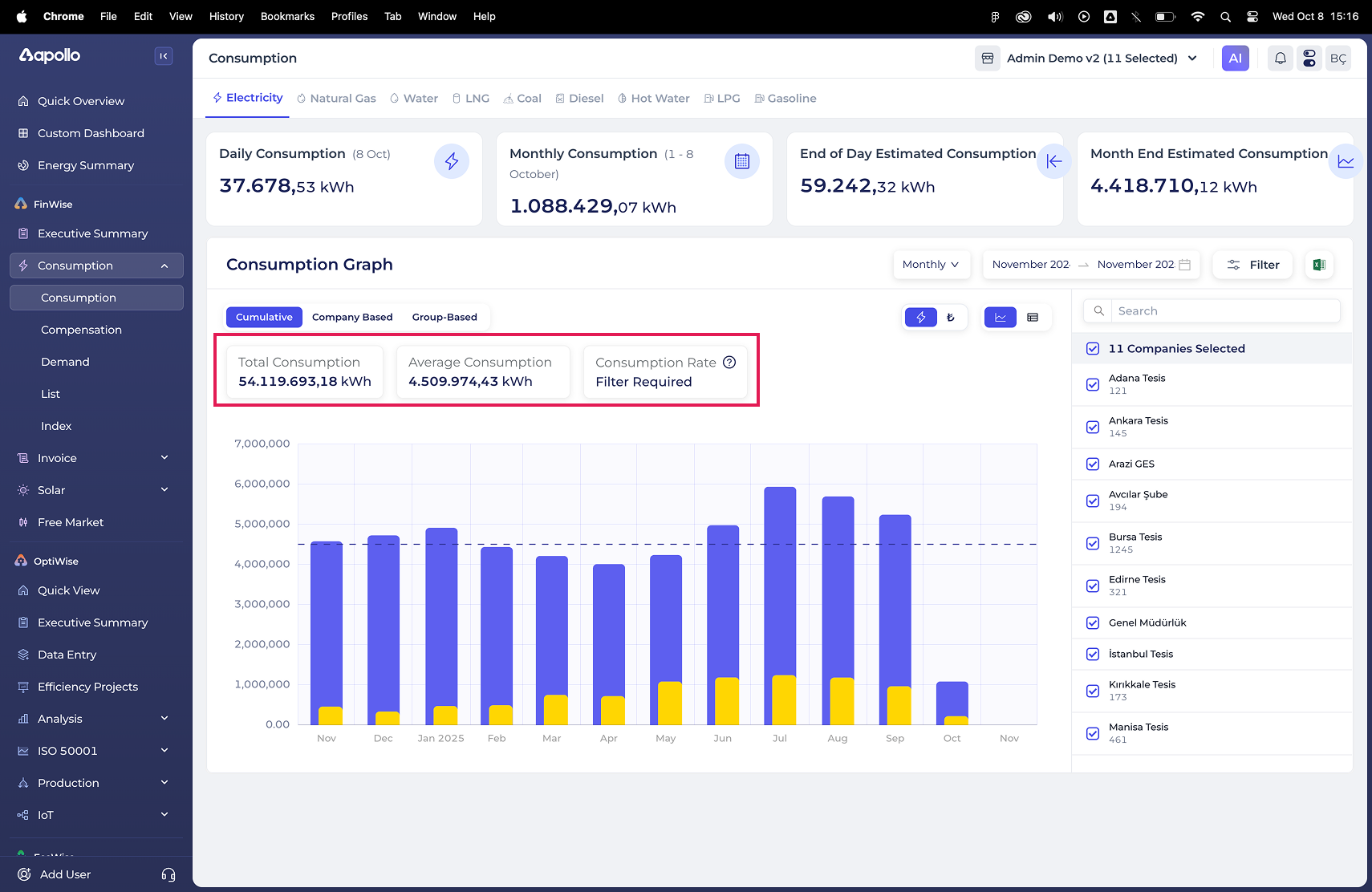 Apollo Eco is an energy analytics platform that enables industrial facilities to monitor and analyze energy consumption across multiple resources.