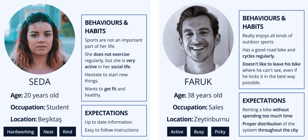 After collecting the information I gained from all the research, I had a deeper idea of who the main user would be. Then I created 2 user personas to be able to focus on users’ problems and mapped their user journey.