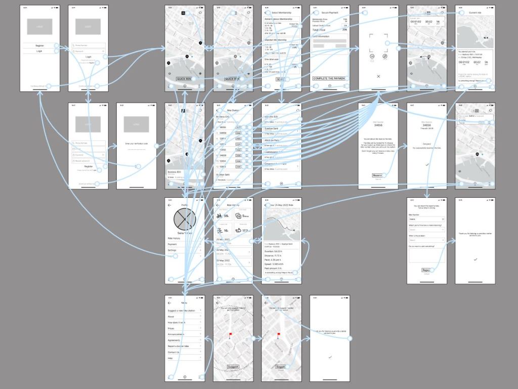 Since this was a self-initiated redesign project I was the sole UX Designer. I conducted research on Smart Bicycle Sharing Systems in different countries and also some indirect research on specific features alone. I looked at online user reviews to better understand the current application. Based on this knowledge, I created user personas and map their journey. After defining the problems & suggesting solutions, I started to brainstorm some ideas with the insights I gained. I played with different solutions by creating low-fidelity wireframe sketches and narrowed these options down to build some medium fidelity wireframes & prototypes. Next, I conducted user testing, analyzed the findings and redefined the problems & solutions. I continued with creating the UI & prototype of this redesign.